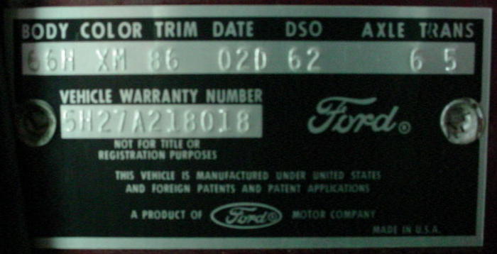 Original 66H (body code), 289 4V, 4-speed